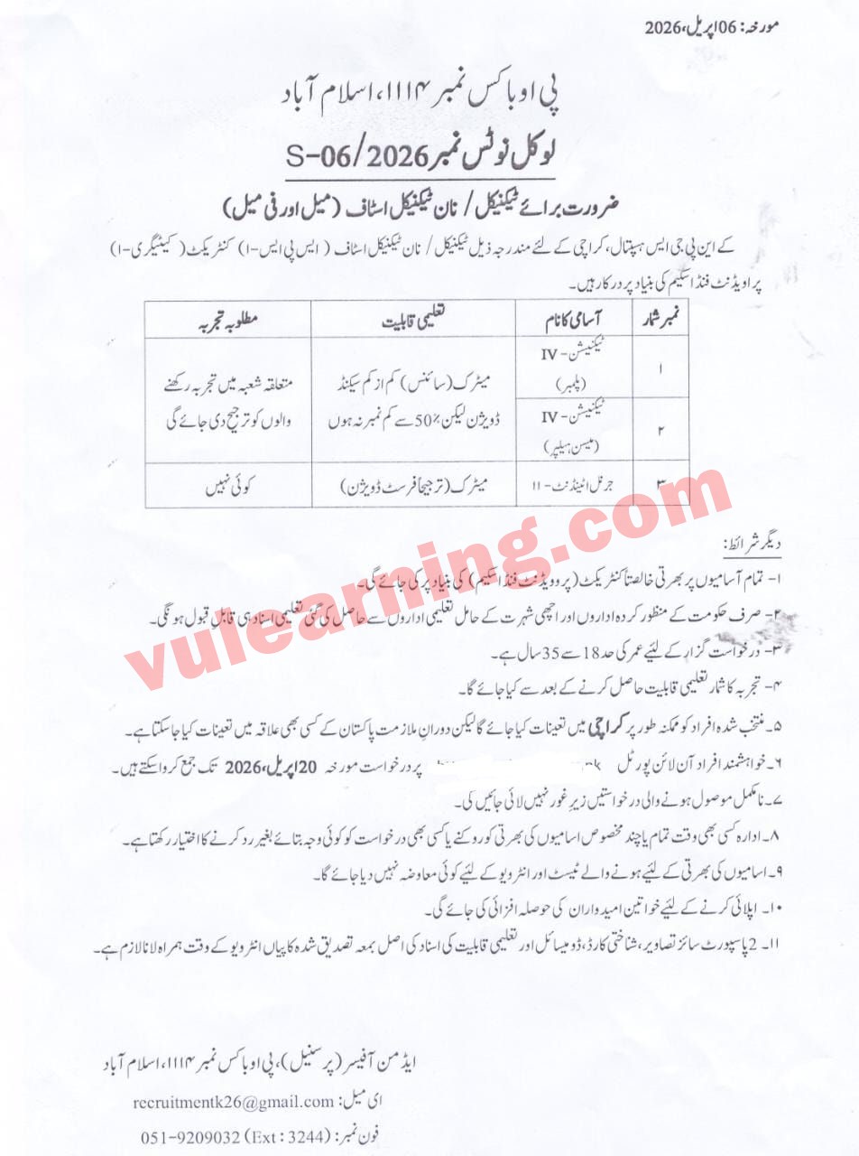 Pakistan Atomic Energy PAEC PO 1114 Islamabad Jobs 2026 for KNPGS Hospital Karachi Job Ad shown on this page is taken from Not in Newspaper Newspaper on 05-04-2026