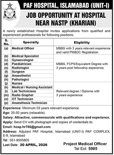 PAF Hospital Islamabad Jobs 2026 for Nurses, Specialists, Technicians & Others Job Ad shown on this page is taken from Jang Newspaper on 06-04-2026
