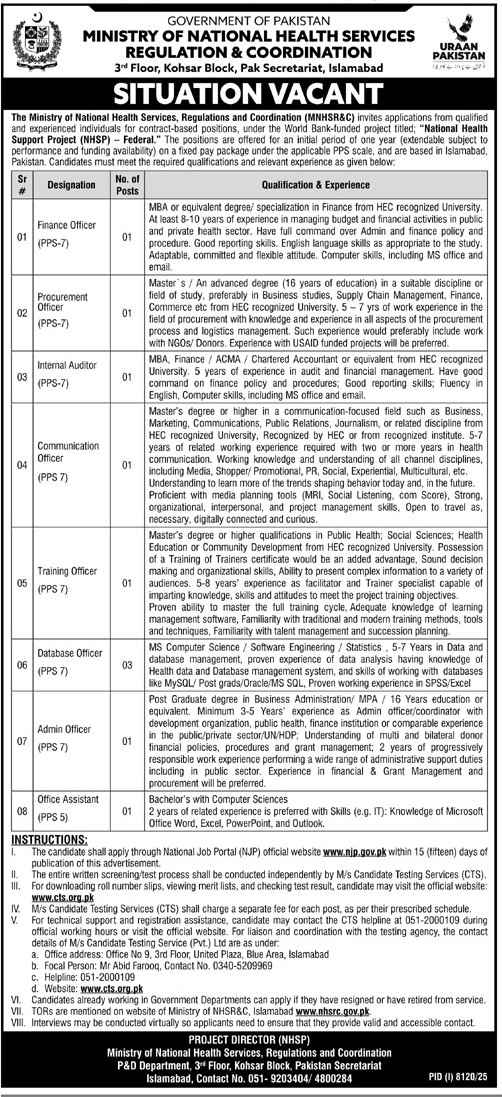 Advertisement of Ministry of National Health Services Jobs 2026 Apply Online National Health Support Project (NHSP)-296577