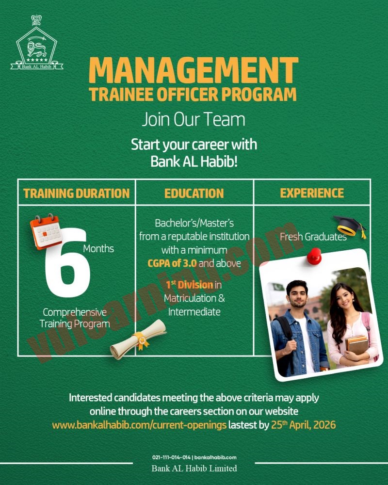 Advertisement of Bank AL Habib MTO Program 2026 Apply Online BAHL Management Trainee Officers Program-296586