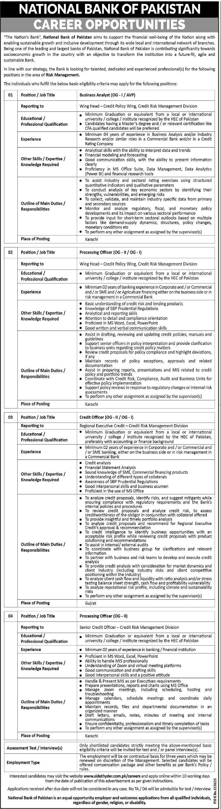 Advertisement of National Bank of Pakistan Jobs 2026 Apply Online for Processing / Credit Officers & Business Analyst Latest-296630