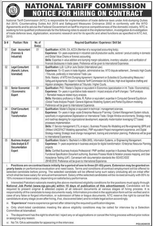 National Tariff Commission NTC Jobs 2026 Consultants, Analysts & Others in Islamabad, Karachi & Lahore Job Ad shown on this page is taken from Jang Newspaper on 14-04-2026
