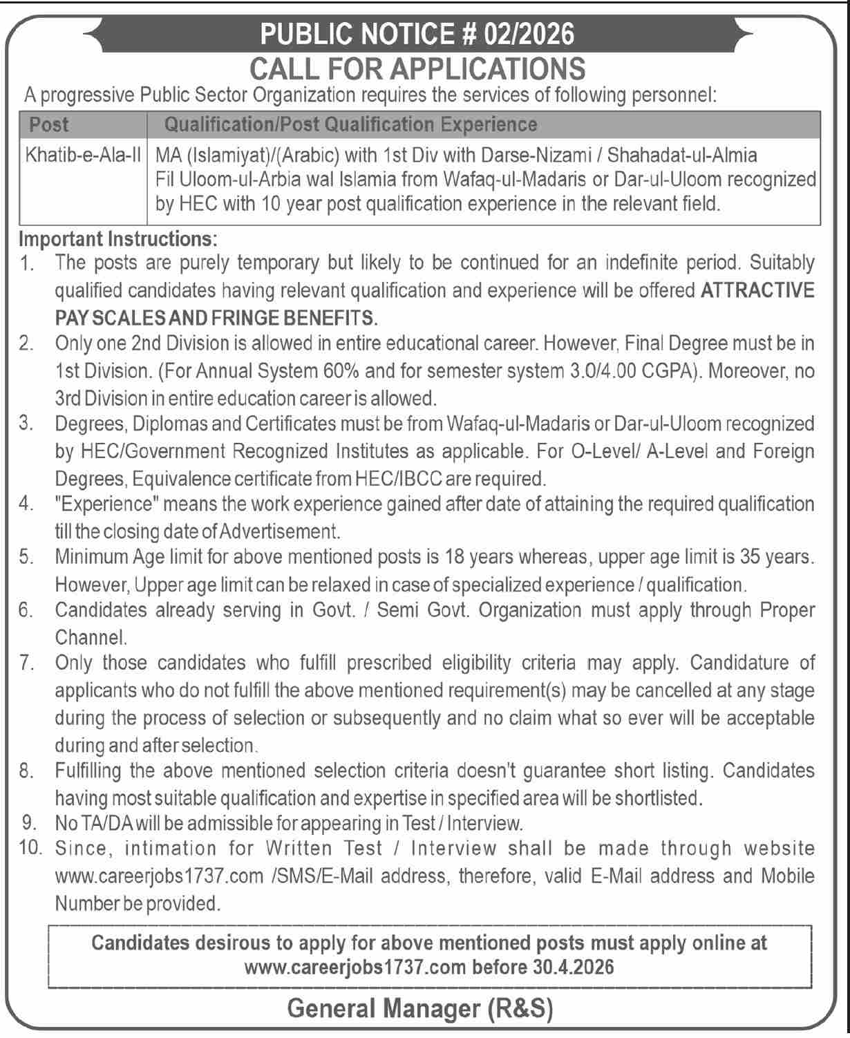 NESCOM Jobs 2026 careerjobs1737 Apply Online Public Sector Organization Latest Job Ad shown on this page is taken from Express Newspaper on 19-04-2026