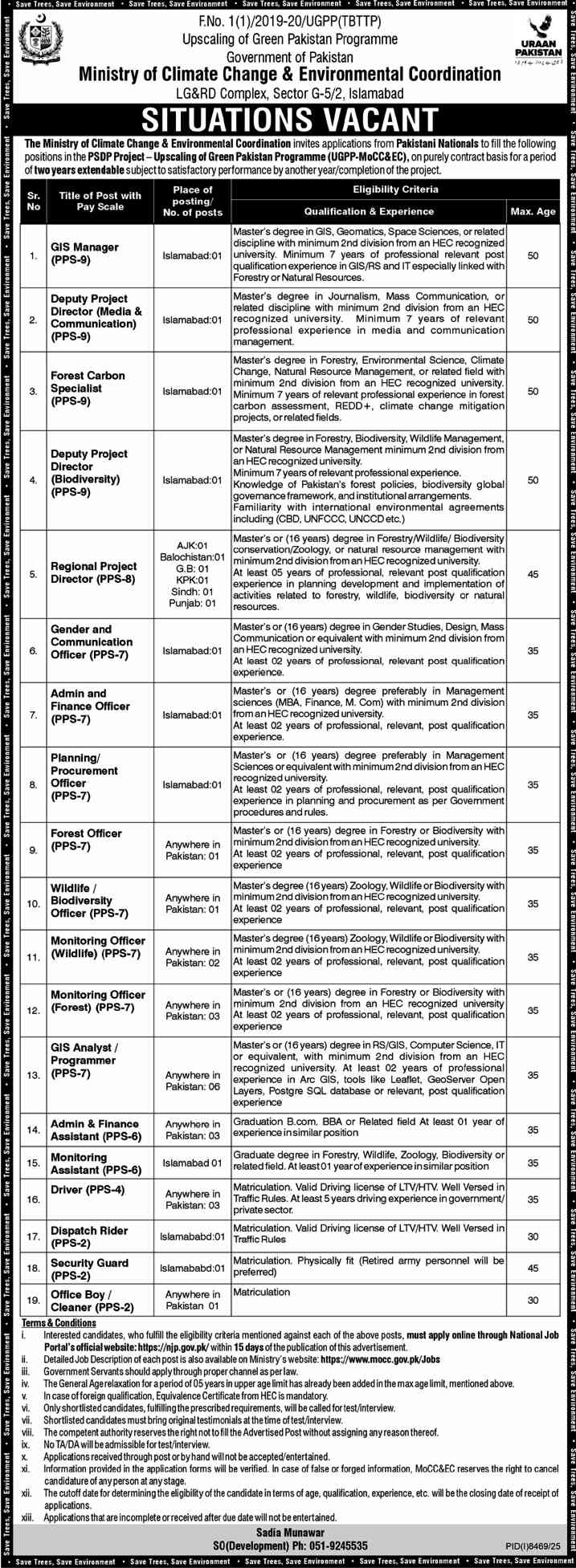 Advertisement of Ministry of Climate Change Jobs 2026 Apply Online for GIS Analyst / Programmers, Monitoring Officers & Others Latest-296704