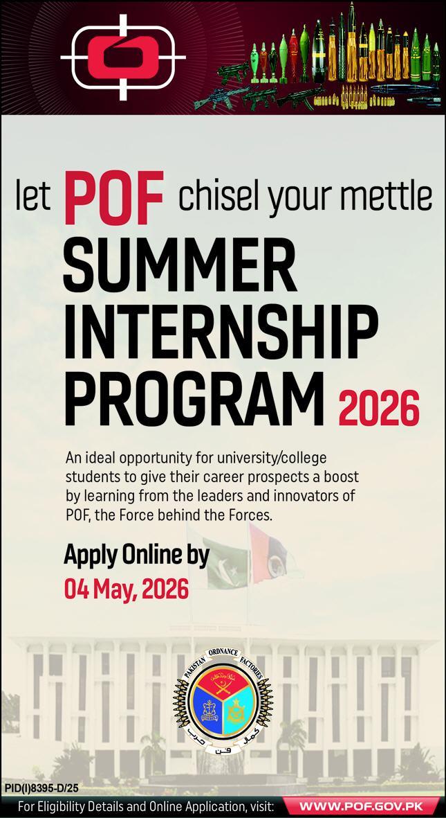 POF Summer Internship Program 2026 Apply Online Pakistan Ordnance Factories Wah Cantt Job Ad shown on this page is taken from Express Newspaper on 17-04-2026