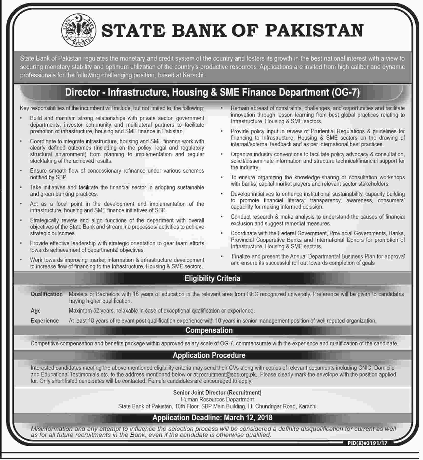 State Bank of Pakistan (SBP) Jobs in Karachi 2018 Advertisement Latest Job Ad shown on this page is taken from Dawn Newspaper on 25-02-2018