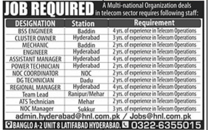 Advertisement of Telecom Sector Multi-National Organization Jobs 2020 for Engineers, Technicians & Others Latest-92417